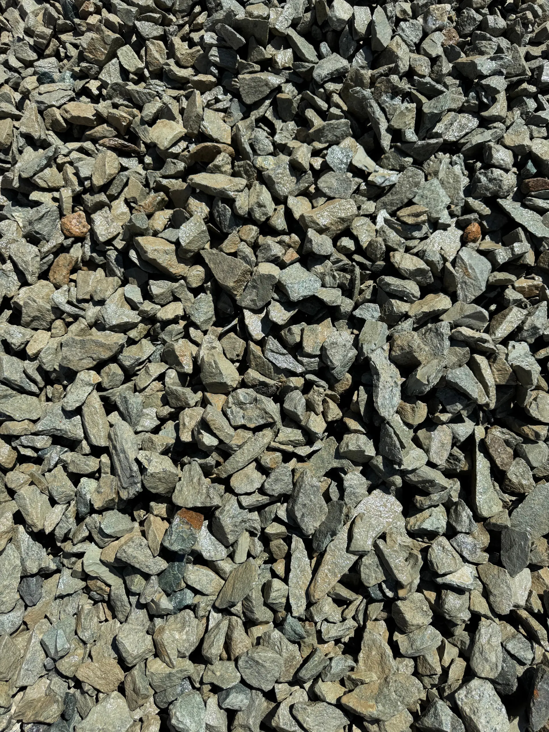 A 1 1/2″ Crushed Clean Rock grayish-blue color A perfect rock for drainage behind retaining walls, pathways, groundcover in borders