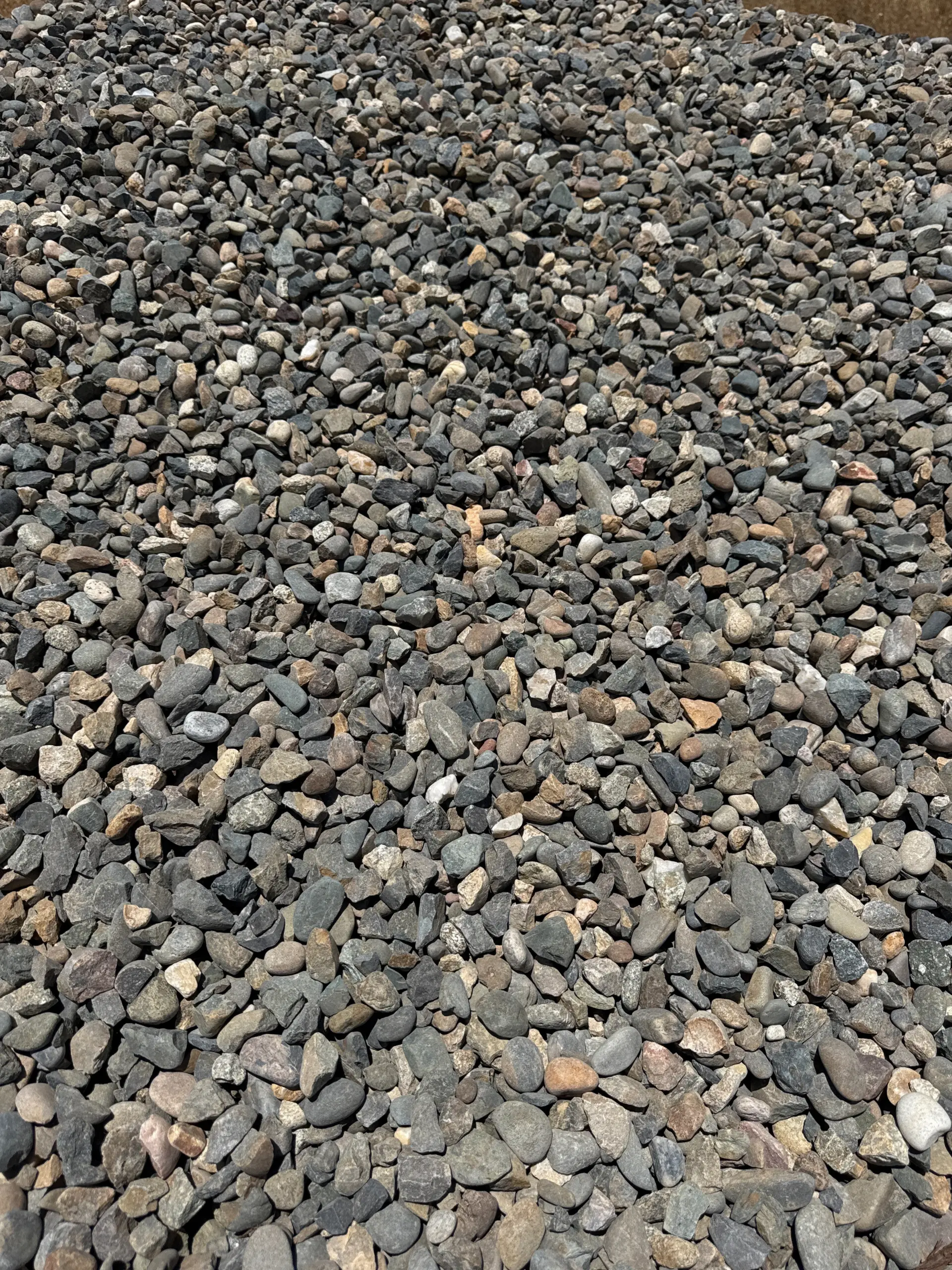 3/4 River Rock is a natural stone characterized by its earthly blend of colors, featuring shades of tan, gray, and subtle hints of red and white. This rock is ideal for drainage, ground cover, and decorative elements, enhancing the aesthetics of gardens and pathways